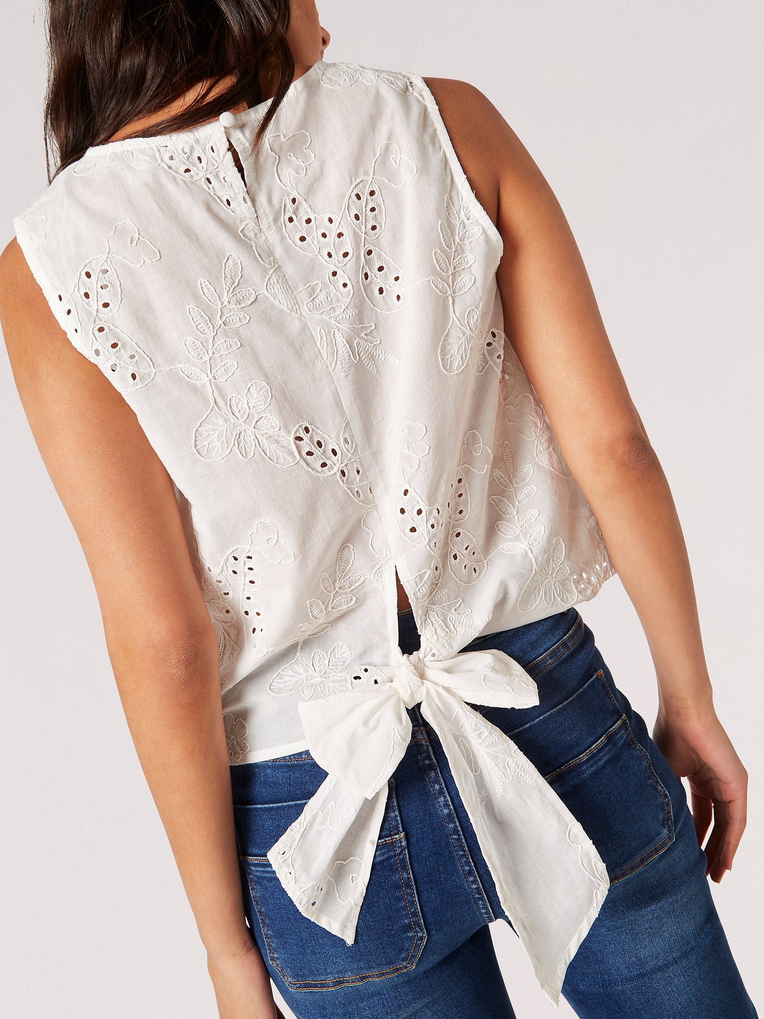 Update your warm-weather wardrobe with this tropical-inspired embroidered tank top. Cut from cotton for a summer-ready finish and decorated with a leaf design, it features sleeveless styling to keep things cool, a crew neckline, keyhole fastening at the nape, and a fabric tie at the hem. Team it with skinny-fit jeans or pair it with a tiered maxi skirt for a boho finish.