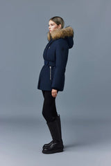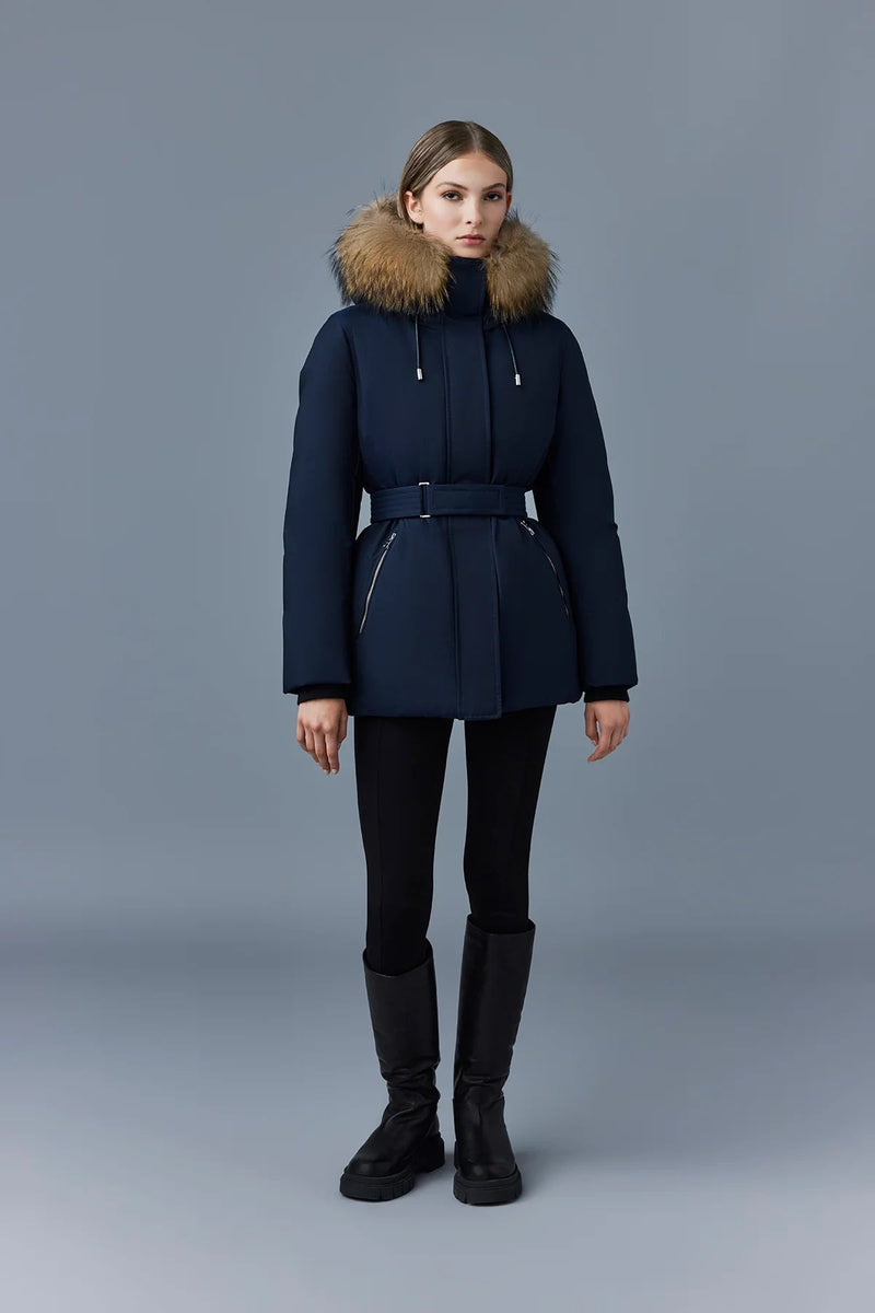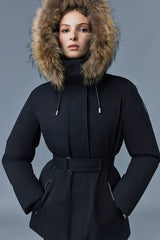 JENI-FZ is a 2-in-1 recycled down Nordic Tech parka for women with a removable lustrous down bib, natural fur trim, and an adjustable storm visor hood. The structured, semi-fitted cut is accented with a ruched Velcro clasp belt. Designed for maximum comfort and protection on the coldest days, rib-knit storm cuffs, storm placket, and insulated pockets add extra warmth. A high-performance staple with modern versatility.