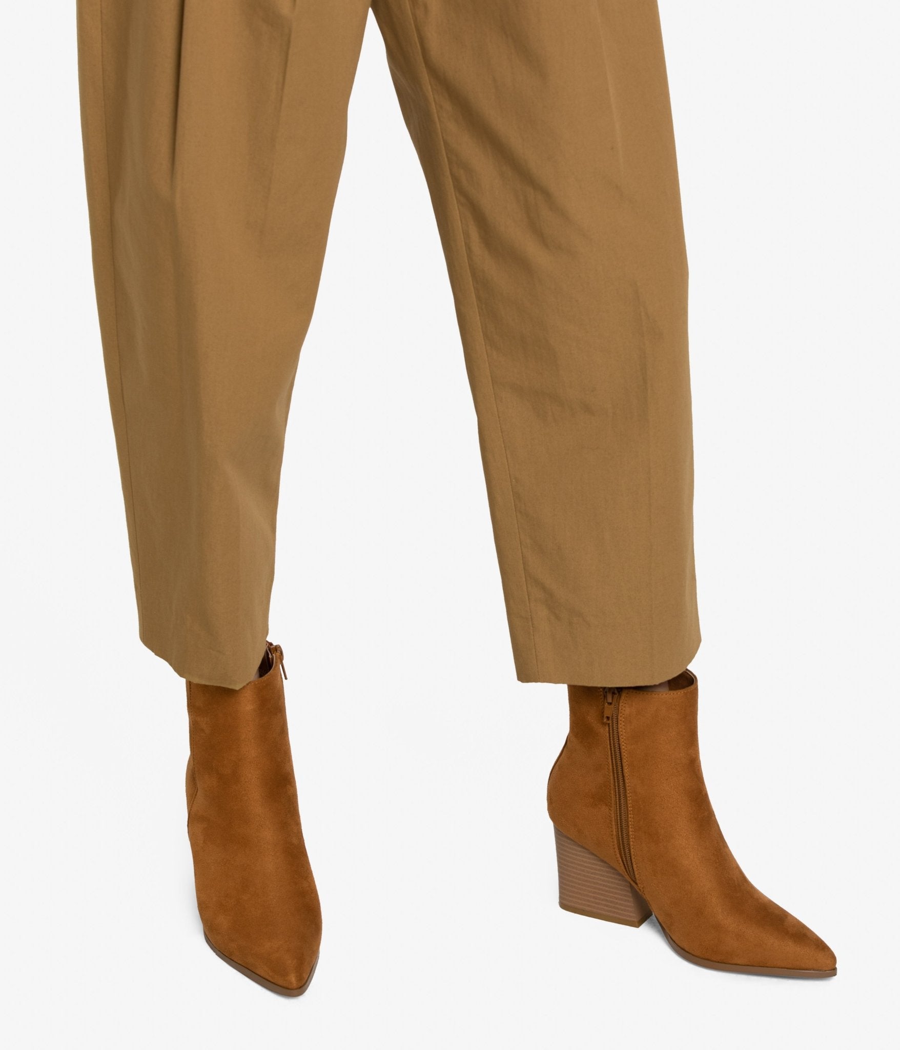 Western pointed toe high heel faux suede boot.