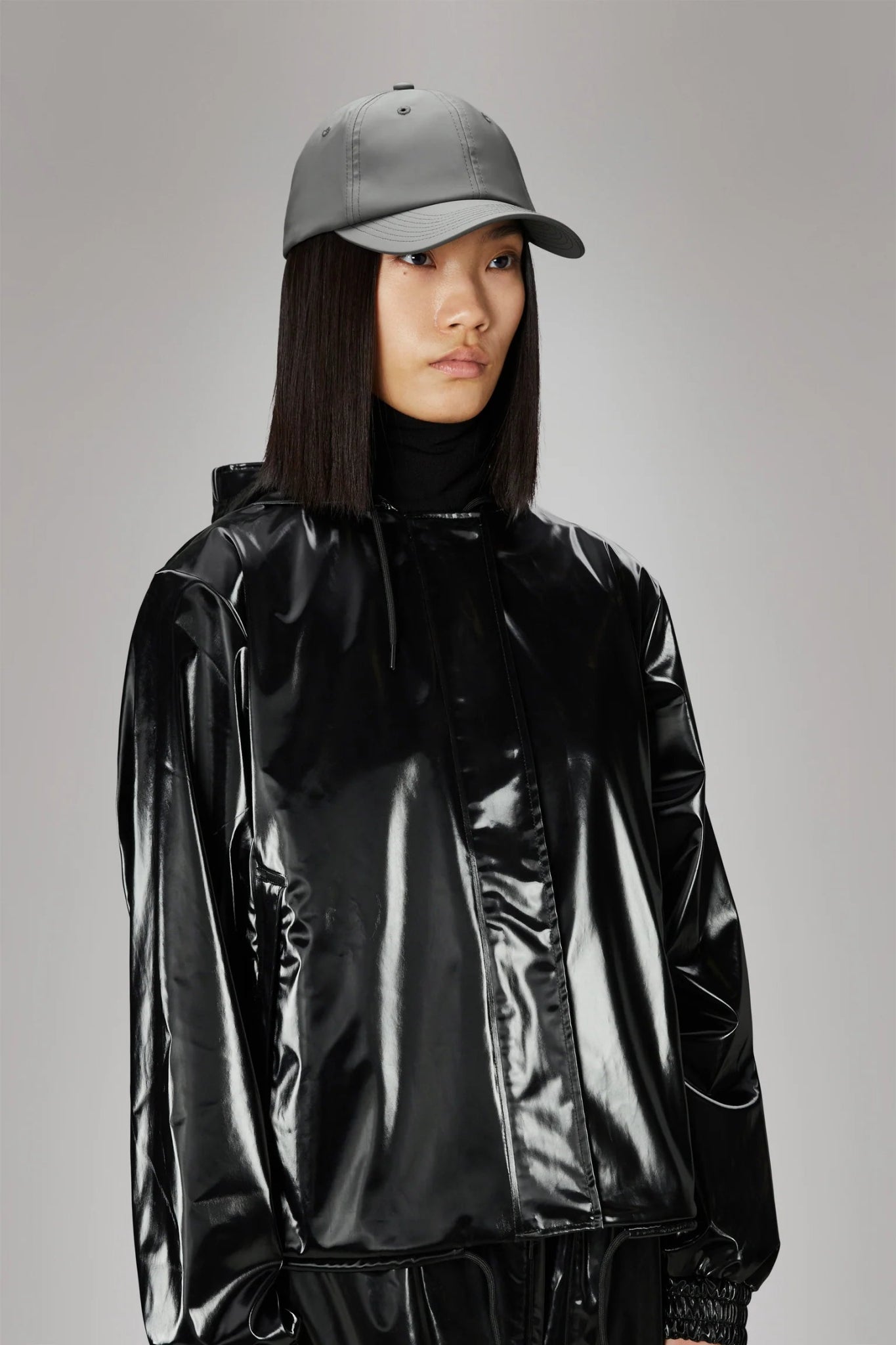 Cap is cut from Rains' signature PU fabric. The finish is lightweight with a smooth feel.