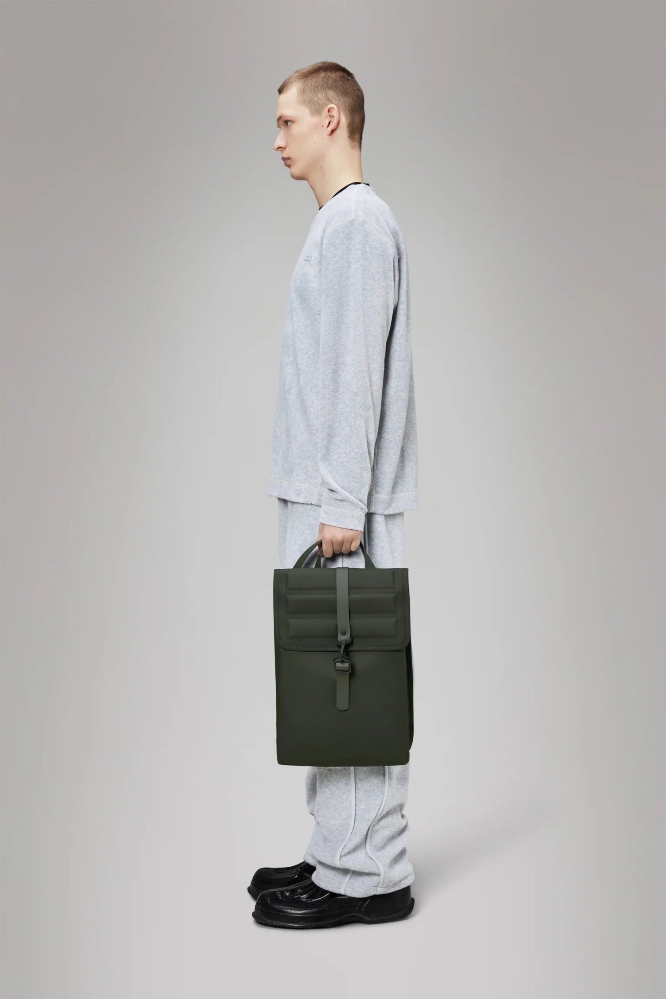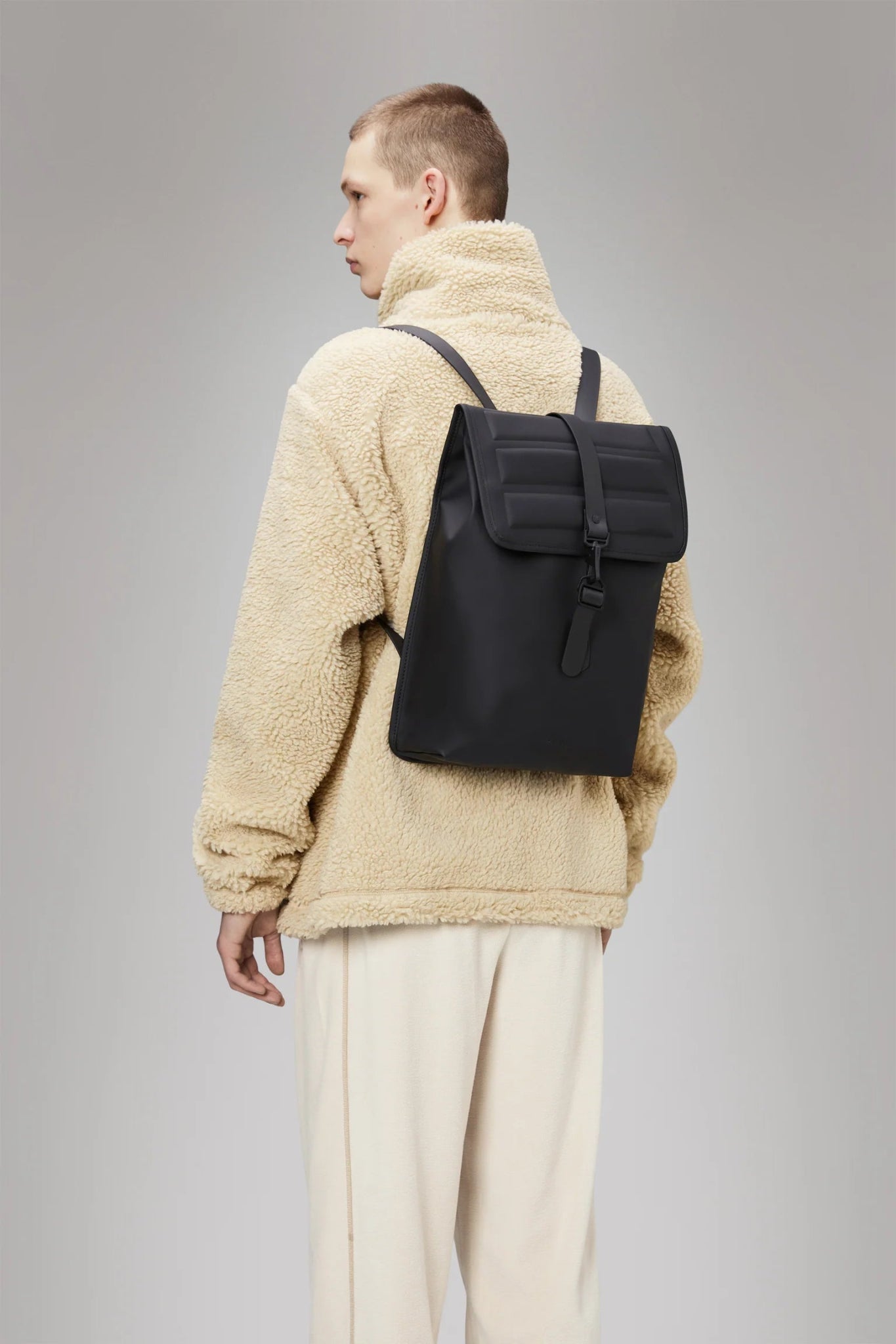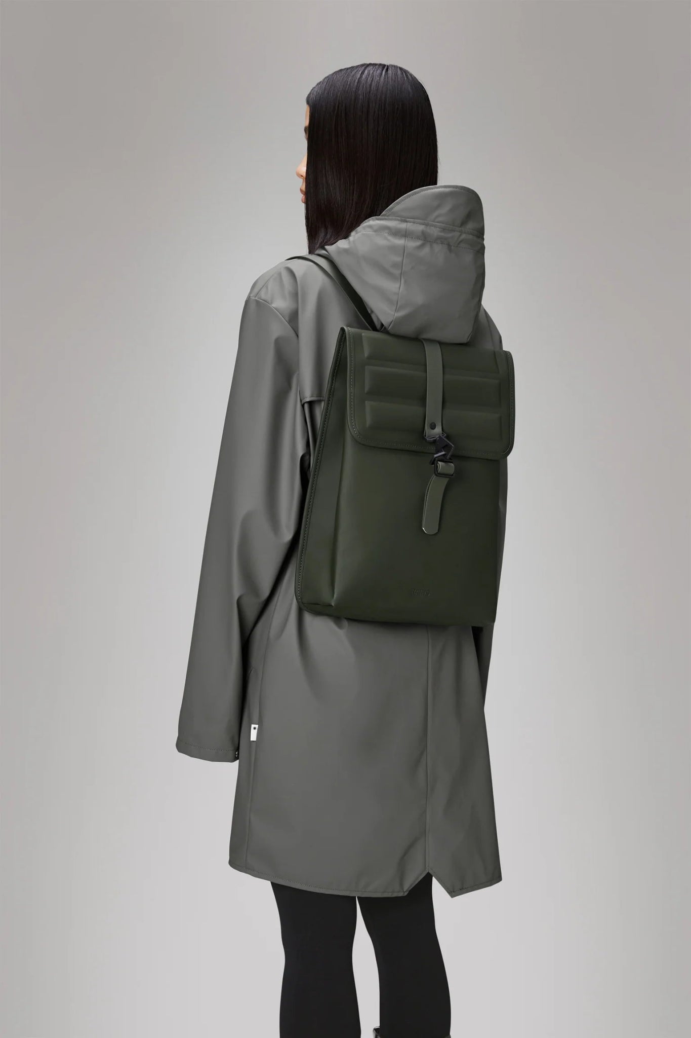 Shield Rucksack is cut from Rains’ signature waterproof PU fabric, engineered for carrying strength, durability and a smooth feel.