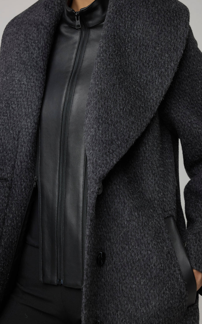 SOIA&KYO LOLLI - Straight-Fit Novelty Wool Coat With Leather bib